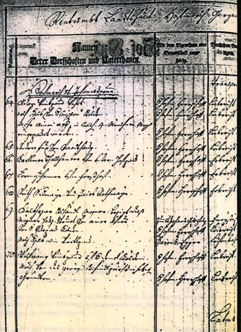Die Aufschreibung der Hofmarkt Sankt Johannesbrunn vom Jahr 1752 beginnt mit der Nummer 64 und Adam Wimpauer dem Wirt. Er besitzt auch die Weißen-Sölde und einen Acker wo 4 Münchner Metzen [4] (ein Münchner Metzen ist 37,06 Liter) eingebracht werden. Beide Anwesen gehören zur Herrschaft Gerzen mit Leibrecht, wobei der Wirt ein 1/8 Hof und das Weißen-Anwesen eine 1/8 Sölde ist. Andreas Fux hat das Badhaus, Leibrecht, 1/16 Sölde; nach dem Anlagsbuch vom Jahr 1760 hat der Bader Franz Felix Mogfarrer das Badhaus. Bartholomäus Thalhammer hat den Unteren Hofbauer, Erbrecht, 1/2 Hof. Lorenz Thanner auf dem Forsthof, Erbrecht, 1/2 Hof. Veit Nidermayr und Jakob Rothmayr, Erbrecht, 1/32 Sölde. Balthasar Schändl, Mesner, besitzt das Mesnerhaus, Besitz des Sankt Johannes Gotteshauses Johannesbrunn, Freistift. Er bezahlt (steuert) von einer Kuh etwas dazu, dann von der 1/8 Zubau-Sölde und einem Viertelbau, Baron von Egger gehörig, Leibrecht. Nach dem Anlagsbuch von 1760 ist der Schuhmacher Jakob Rieder auf dem Mesnergütl. Wolfgang Wimbpauer auf der 1/8 Demelsölde, Leibrecht. Veit Wagner, auf der 1/8 Faltermannsölde, Leibrecht. Bartholomäus Sünhueber auf dem 1/2 Thurnbauernhof, Erbrecht. Augustin Faltermayr auf dem 1/2 Kerschergut, Leibrecht. Andreas Högl auf der 1/8 Tischlersölde, Leibrecht. Bartholomäus Prändtl, 1/8 Sölde, Leibrecht. Mathias Nagl, Leibrecht, 1/32 Leerhäusl. Antoni Steckhermayr, Schmied, Leibrecht, 1/8 Sölde. Simon Payrstorffer, auf dem ½ Alramhof, Erbrecht. Das 1/2 Schellnberger Gut des Martin Thalhammer gehört zur Kirche Johannesbrunn, Leibrecht. Adam Hueber auf dem 1/2 Eglgut, Hofmark Herrschaft Gerzen, Leibrecht. Mathias Englhardt, Leinweber, 1/16 Sölde, Leibrecht. Das 1/4 Oswaldgut des Mathias Äppinger gehört leibrechtweise zur Kirche Johannesbrunn. Simon Häglsperger, Herrschaft Gerzen, Leibrecht, 1/16 Sölde. Hans Payrstorffer, 1/2 Hof, Leibrecht. Joseph Sendldorffer, Leibrecht 1/32 Sölde. Adam Hofstötter, 1/2 Anderlbauernhof, Erbrecht. Jakob Meindl, Leibrecht, 1/16 Sölde. Bartholomäus Wimber, Leibrecht, 1/8 Sölde. Jakob Scheidlkhofer, Leibrecht, 1/16 Sölde. Simon Pleninger, Leibrecht, 1/16 Sölde. Eine Bestandaufnahme über die Hofgrößen ergibt, dass es in der Hofmark Johannesbrunn doch eine beachtliche Zahl von großen Besitzungen gibt: neun ½ Höfe, drei 1/4 Höfe, acht 1/8 Sölden und drei 1/16 Sölden.